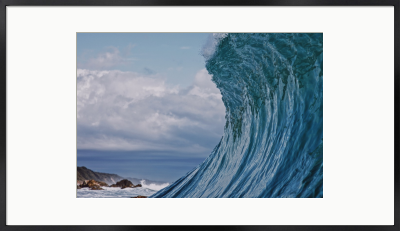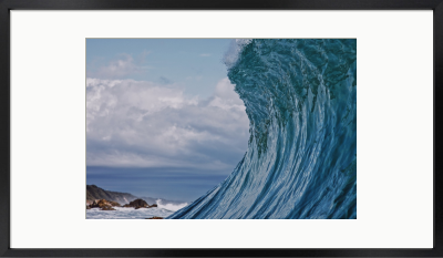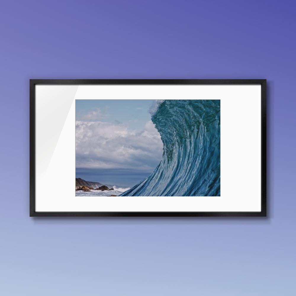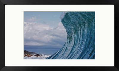ファインアート写真は、今にも砕けようとする巨大な波の瞬間を、臨場感あふれるクローズアップで捉えた作品です。