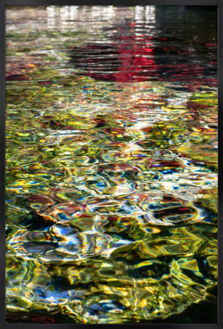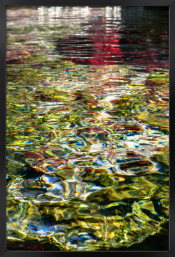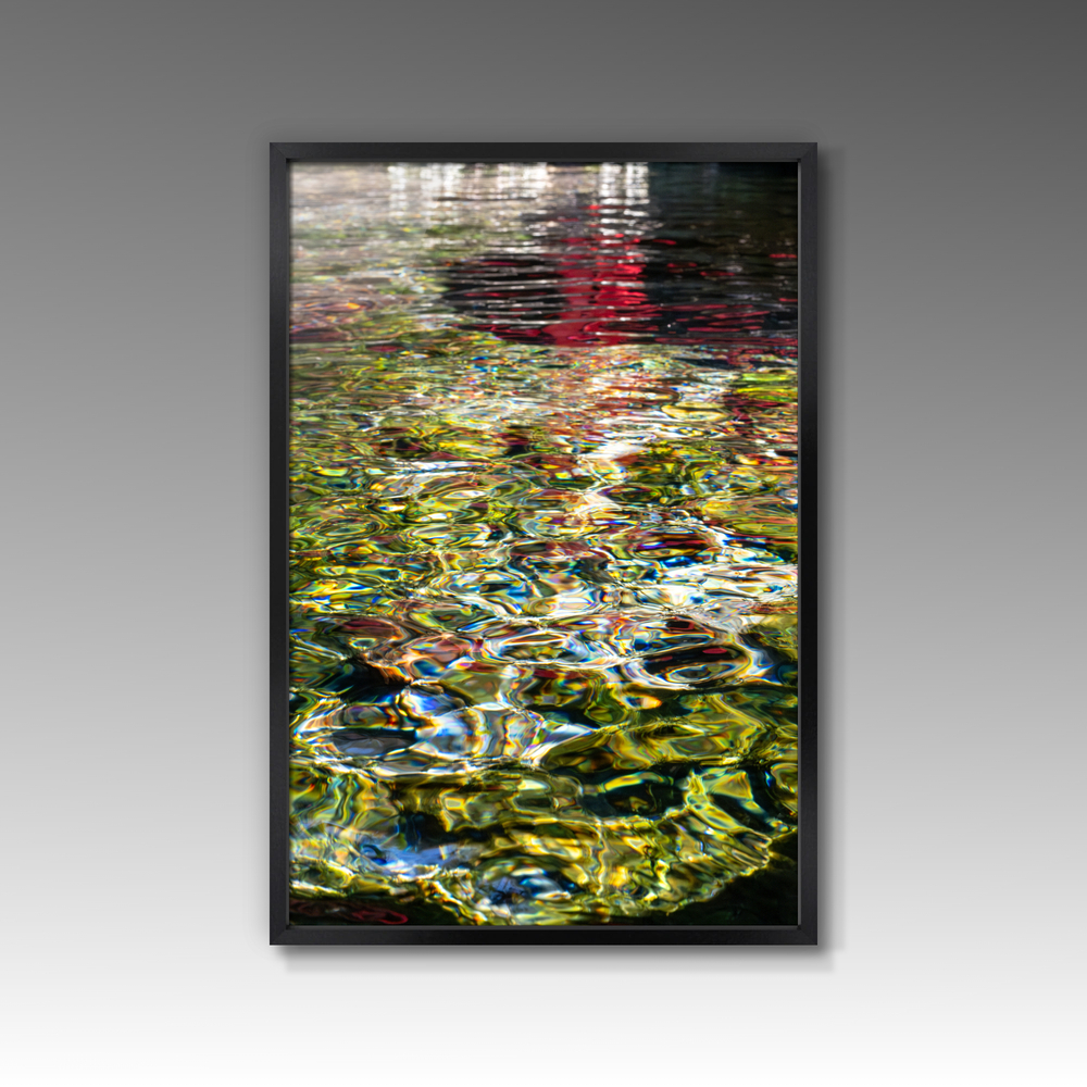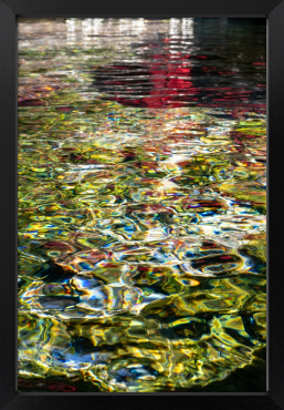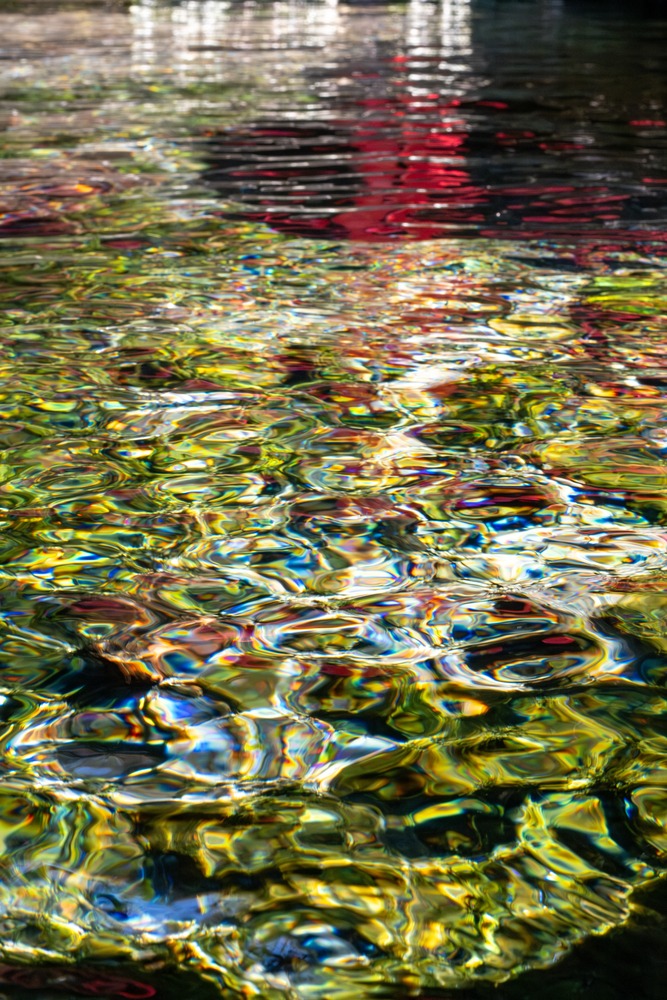 阿蘇郡南阿蘇村「白川水源」 訪れた人が取水できるエリア 直射日光が差し込み虹色に輝いた