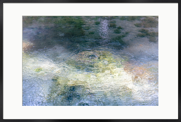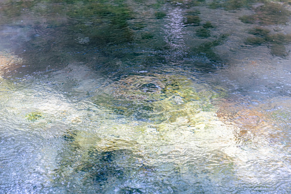 阿蘇郡南阿蘇村「白川水源」 湧き上がる水によって振るみなも 水中植物の色がゆらゆらと変化する