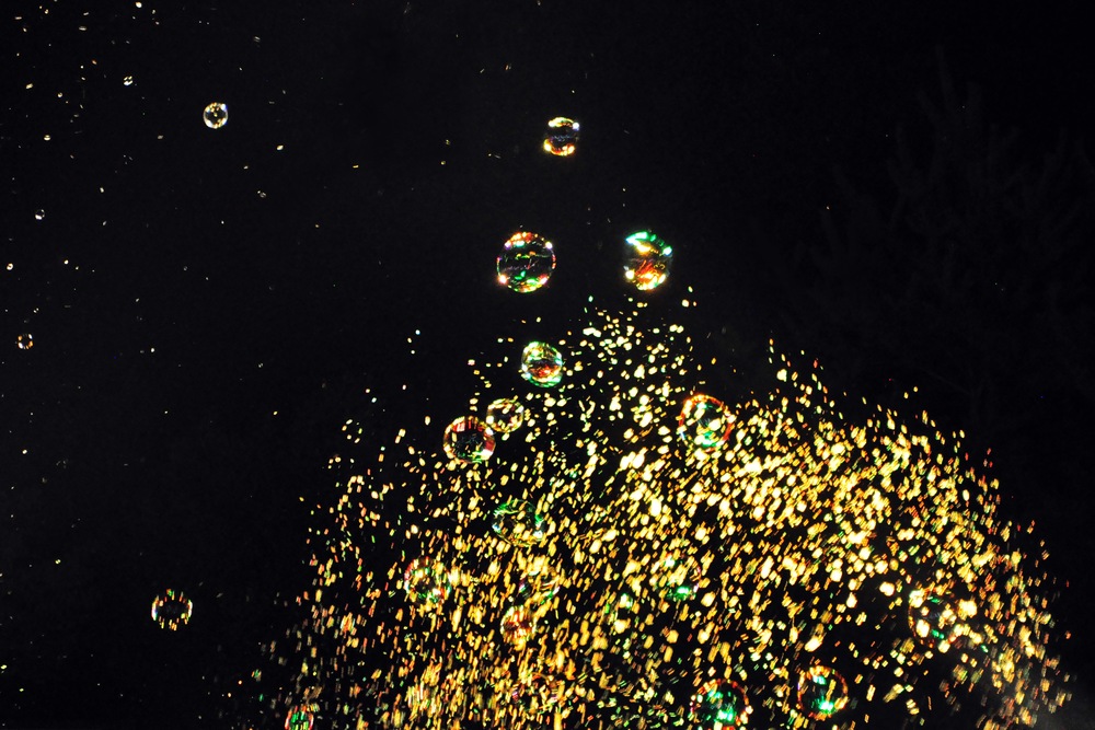 撮影日:2025年9月14日 日曜日 19:23 シャボン玉が幻想的に夜空に舞う