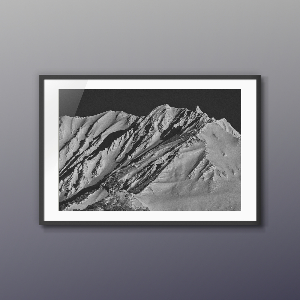 【モノクロ雪山アート:日常に洗練を添える一枚】