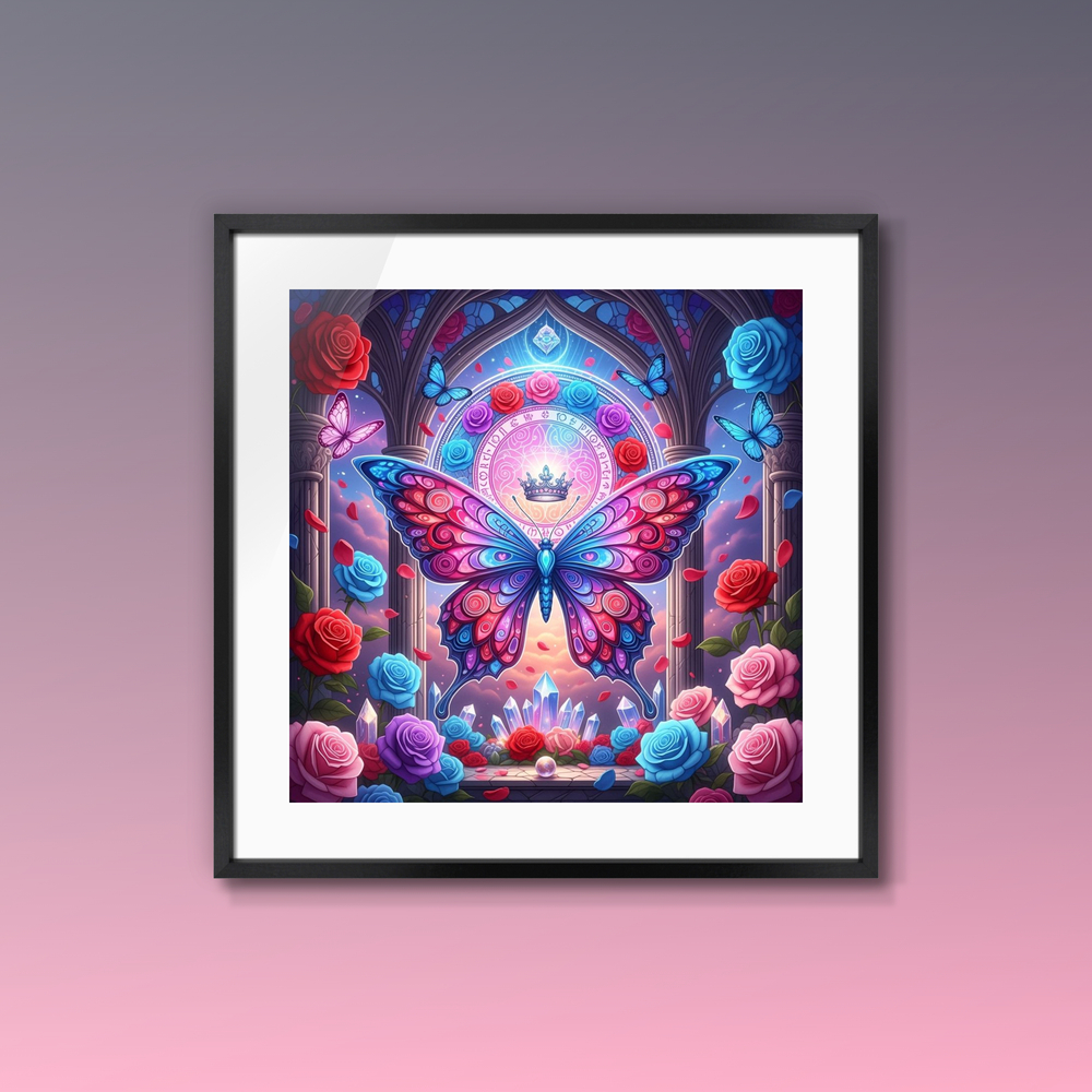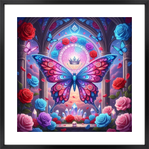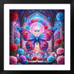 この作品は、AIで生成した、人間の感情の光と影をステンドグラスの幻想的な世界で表現したものです。中心に描かれた蝶は、喜び、悲しみ、情熱、夢といった感情のスペクトルをその羽に宿し、見る者の心に語りかけます。深紅のバラは情熱を、青いバラは安らぎを、紫のバラは夢想を象徴し、それぞれが内なる光を放ちながら咲き誇ります。