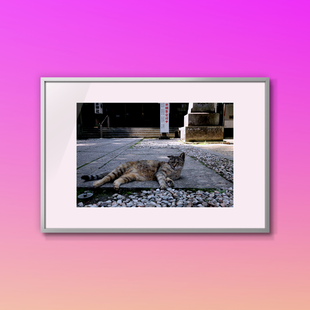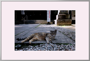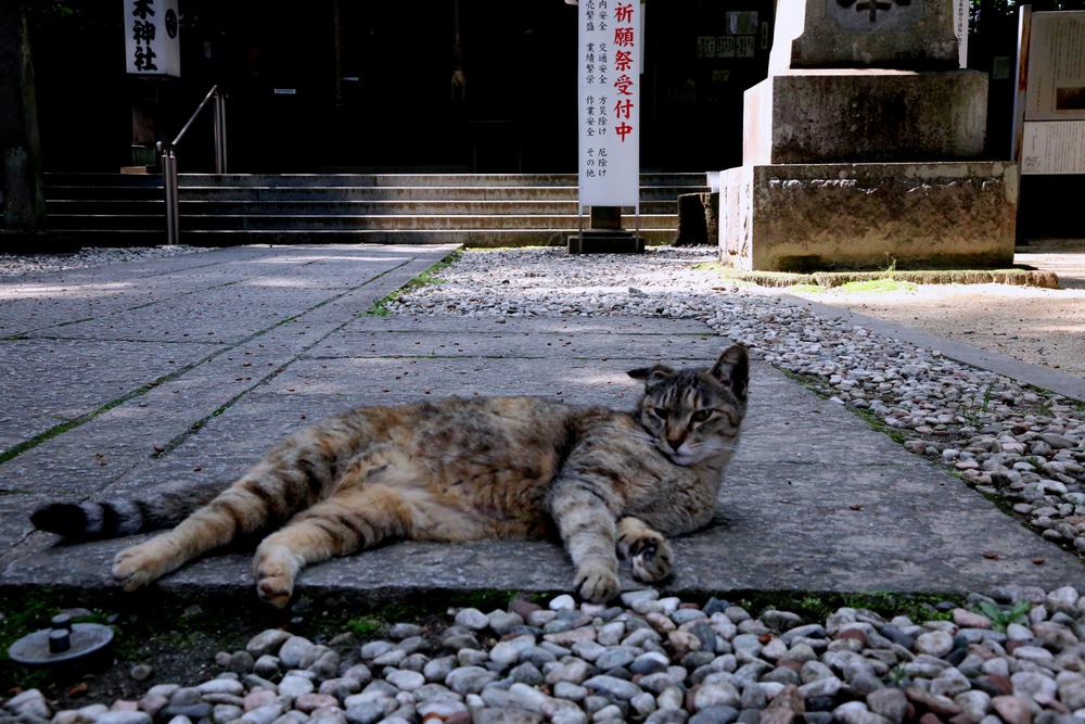 某神社に居ついた猫です。他にも何匹かおり、皆神社の関係者に大切に扱われており、とても人懐っこいです。 折れた耳がかわいいこのネコを目当てに訪れる観光客(参拝者)、様子を伺いに足繁く通う近所の人たちも多いようです。