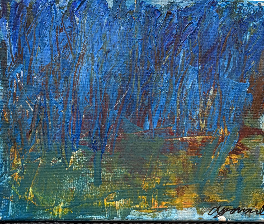 雨の中、私はキャンバスにナイフで色を載せる。 雨音は、大切な人との別れの記憶をそっと呼び起こす。 そういう日ほど、静かに、色を重ねるのです。 形のない感情が、雨粒のように画面ににじむ。 私はもう、涙は流さない。 前に進んでいるから——この絵は、その静かな決意の記録です。