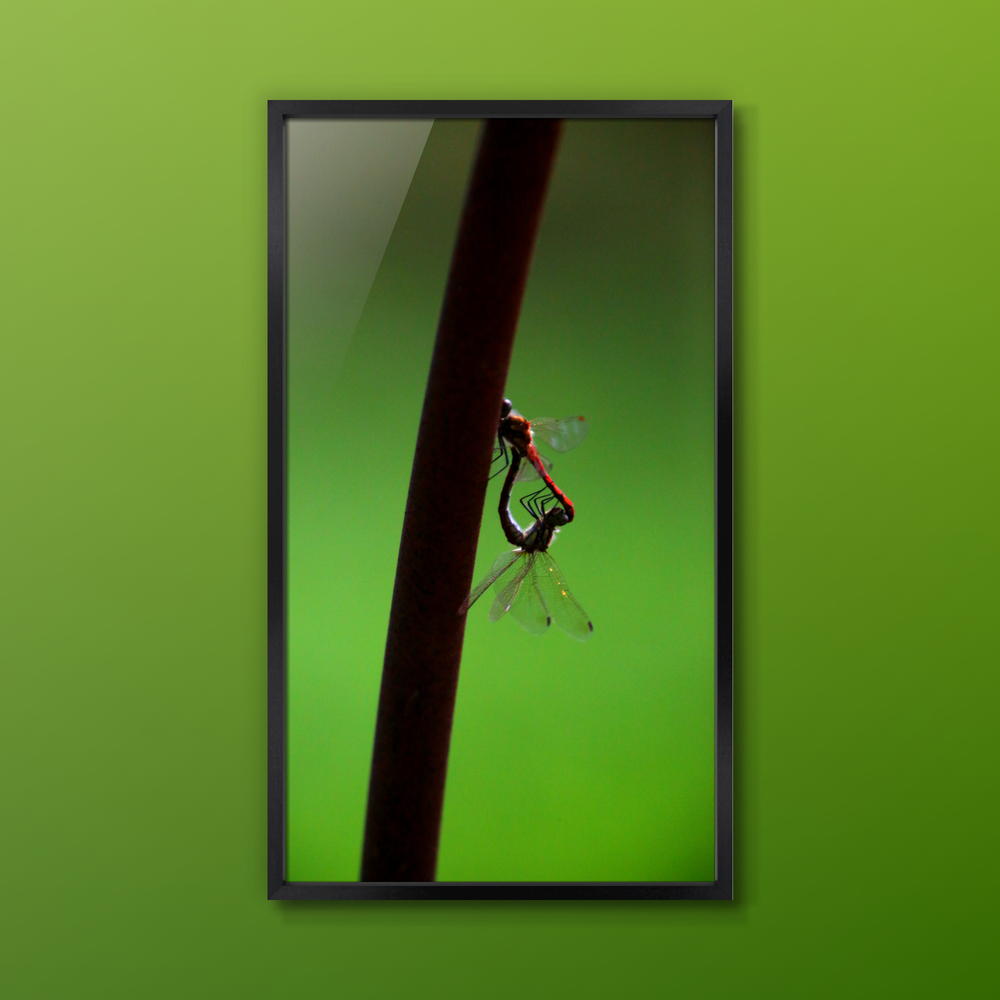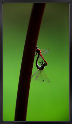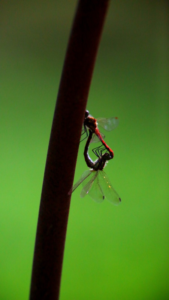 A male, red one, has grabbed a female and led to a post in a form called ‘tandem’ for making.