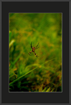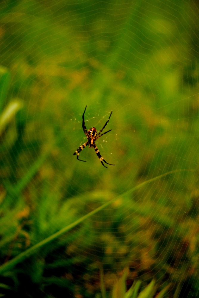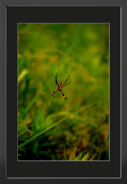 河原の藪に大きくて張られた糸(web)の主は一夏を経て大きく成長したジョロウグモの雌です。 温暖化の影響でまだまだ沢山の昆虫が飛び交っているので、餌には当分不自由しなさそうです。