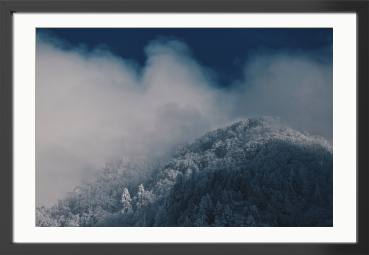 都市の喧騒から隔絶された、冬の山頂。深い霧と雪に閉ざされた一瞬の静寂を切り取りました。この一枚が、あなたのリビングに「深呼吸」をもたらし、忙しい日常を忘れる癒やしの空間を創り出します。
