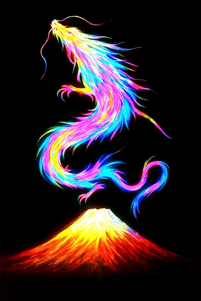 富士から天に昇る龍をデザインしました🐉 キャンバai生成。