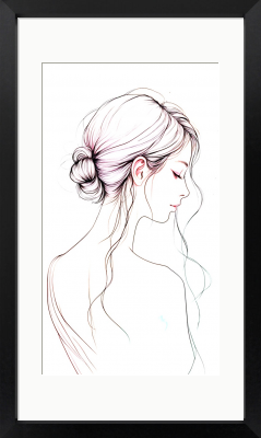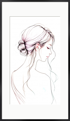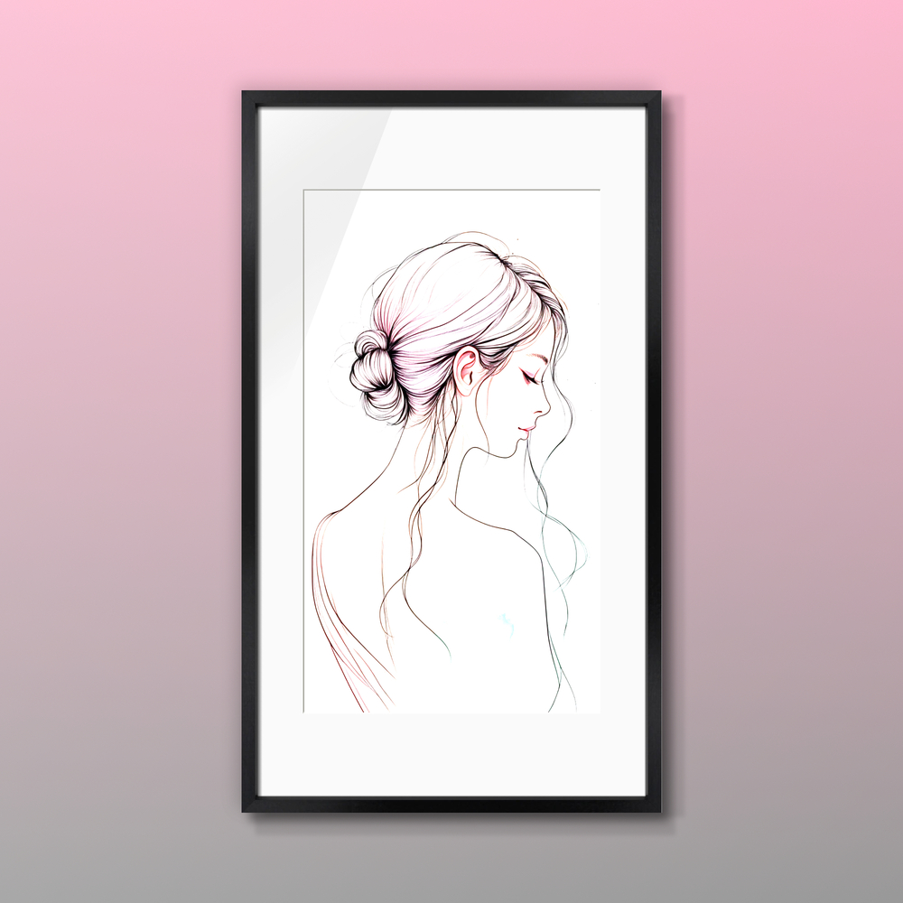 柔らかな線と淡い色彩で描かれた女性の横顔。繊細な筆致が内面の静けさと儚さを表現しています。キャンバAI生成による現代アート作品で、デジタルの美と人の感情が融合した一枚です。インテリアにも調和し、心を落ち着かせる優しい存在感を放ちます。