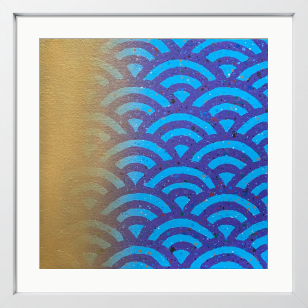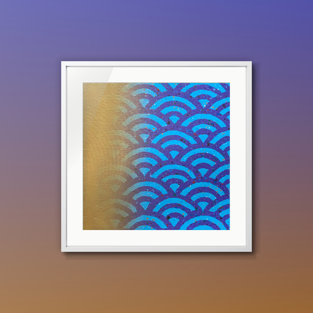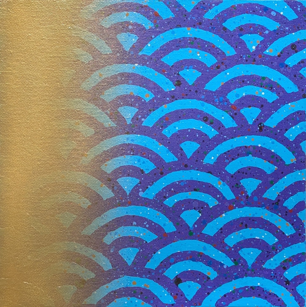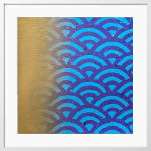 平穏無事な日常の恒久を祈念する象徴である青海波。闘いの絶えない現代に警鐘を鳴らす徴と共に光差す明るい未来への躍動感も描きました。