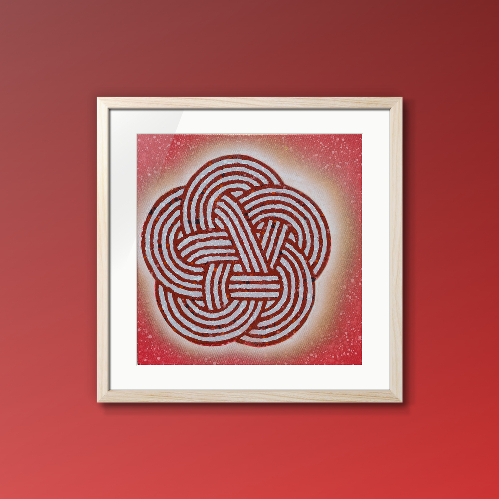 人と人とを結び付け魔除けの徴である「水引」をモダンかつポップに描きました。