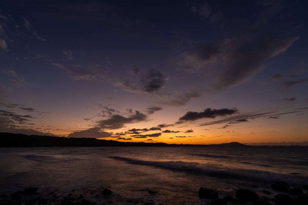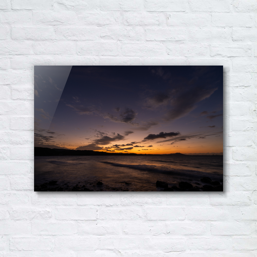 本作品は、色彩を抑えたグラデーションと構図のバランスによって、「境界」という概念を抽象的に表現しています。 見る人の心の状態や見る場所の環境によって、夜明けにも夕暮れにも見えるかもしれません。