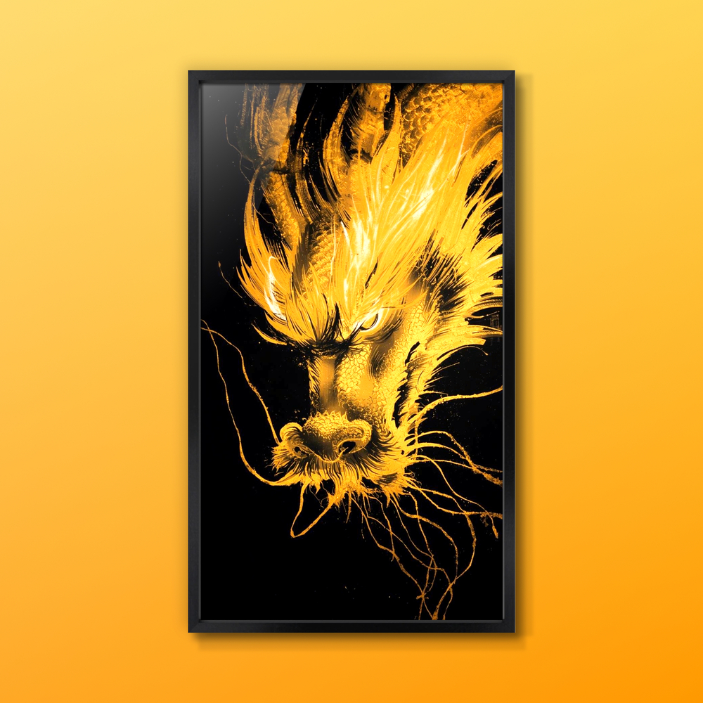 深淵から浮かび上がる黄金色の龍。 その瞳は宇宙を映し、静寂の中に圧倒的な力を宿す。 表現された筆致は、まるで魂が動き出すような迫力を放ち、見る者に神聖な畏敬と静謐を同時に与える。 スピリチュアルな波動と芸術性が融合した、唯一無二の「覚醒する龍」の肖像。キャンバaiで描きました。