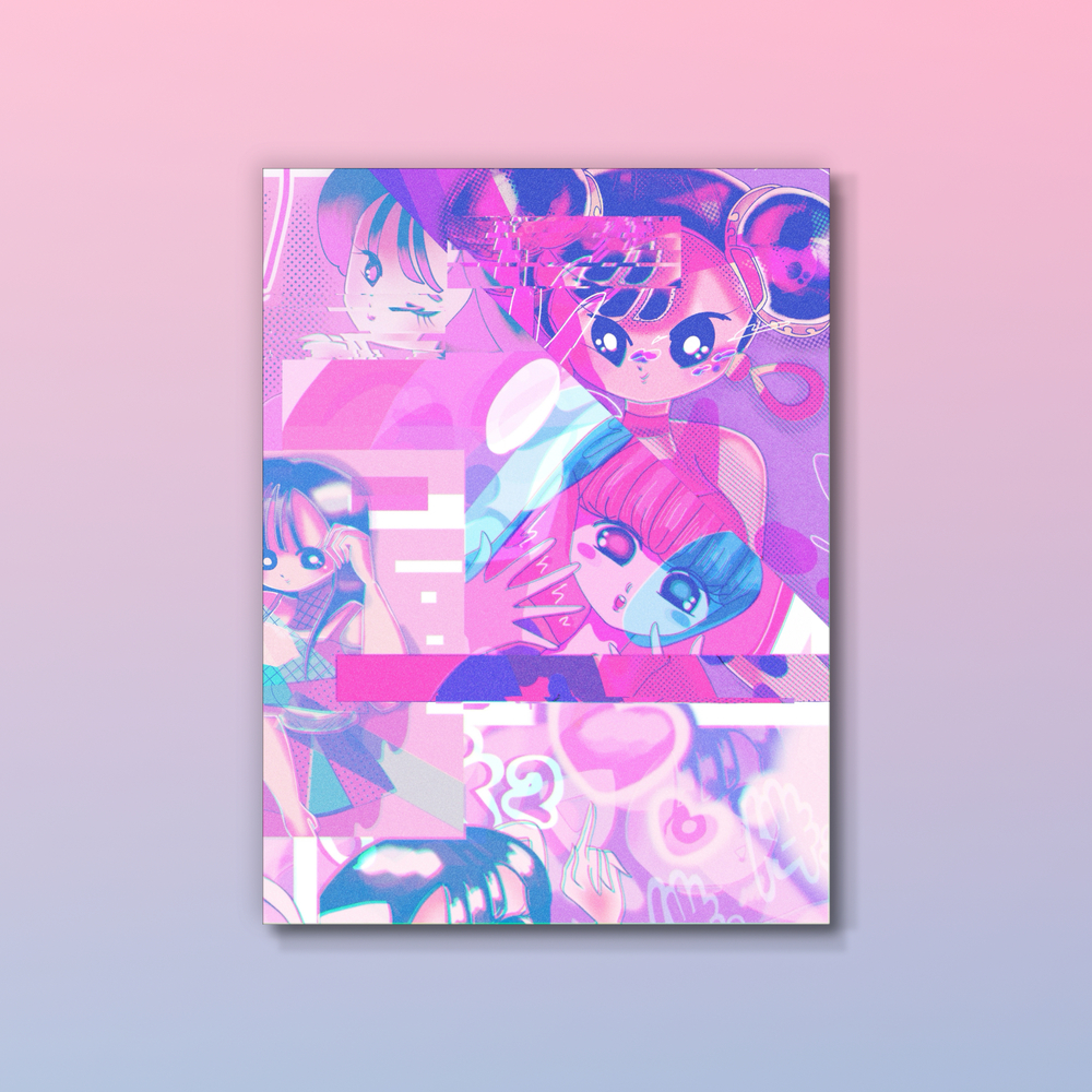今まで描いてきたイラストを加工して、 集大成のようなイラストにしました。 自分自身絵が描けなくなる時がよくあるのですが、そんな時に 【こんなに楽しく絵を描いていたんだな】という 気持ちを思い出せるようにという思いを込めて作った作品でもあります。