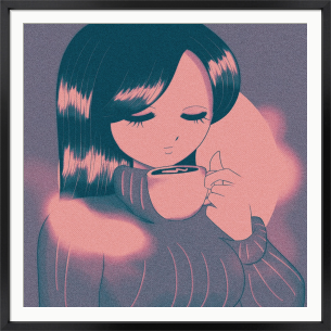 喫茶店で隣にこんな女性がいたら… という想像から描きました。 是非喫茶店でのインテリアに(*´-`)