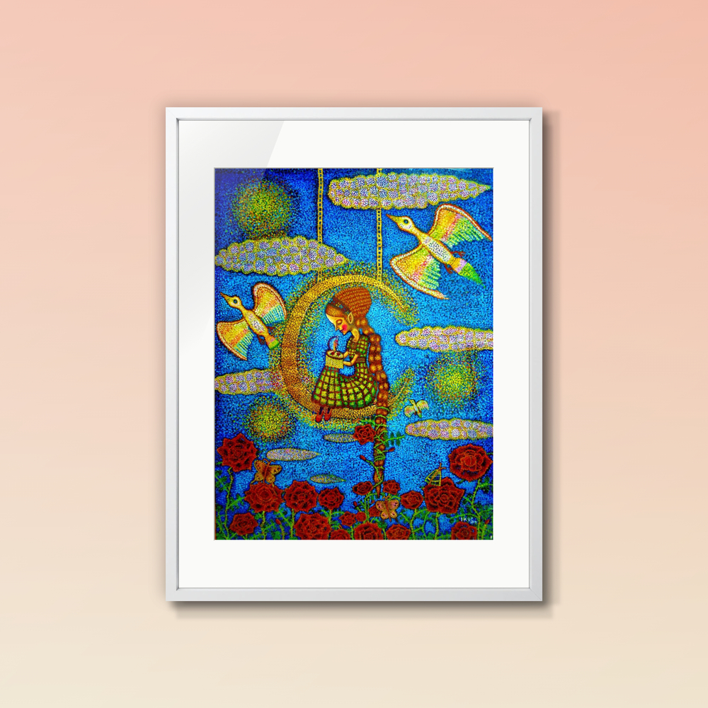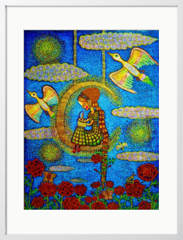 画材 アクリル絵の具 技法 点描画 2009年 赤光社展 入選 新道展 入選作品 塔に閉じ込められた。 グリム童話のラプンツェル姫の 心の中の自由を描きました。