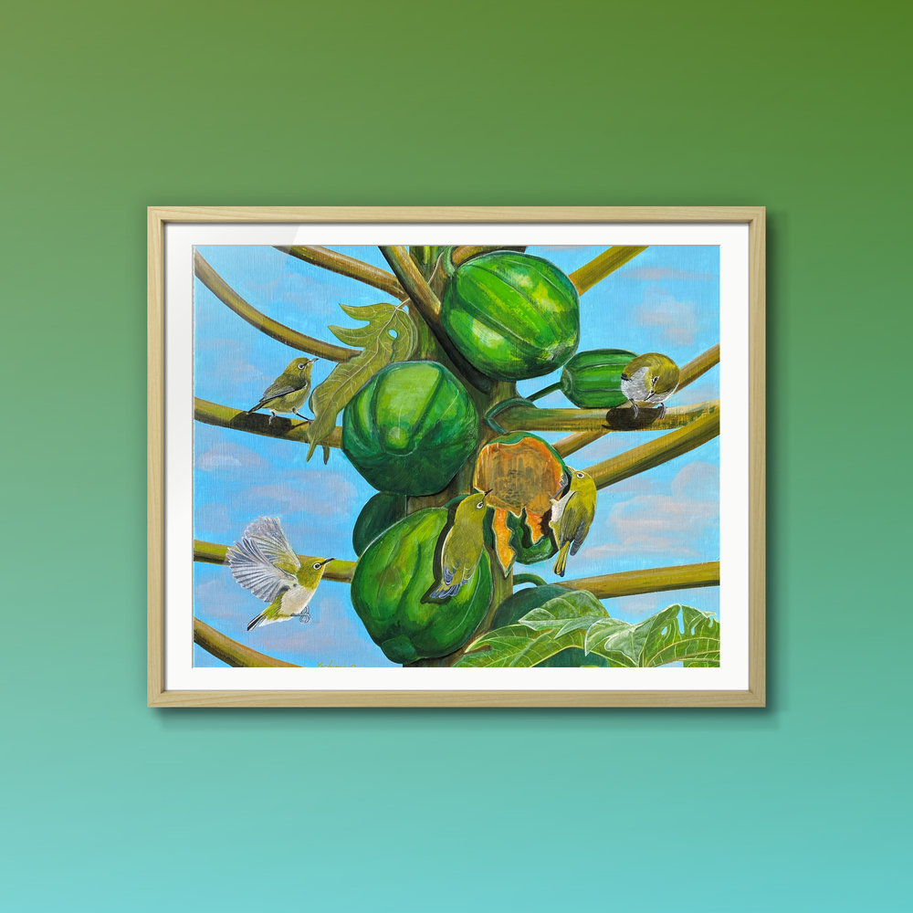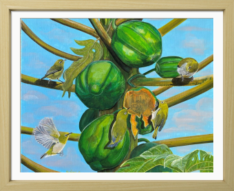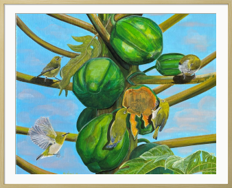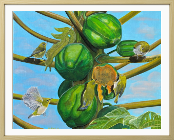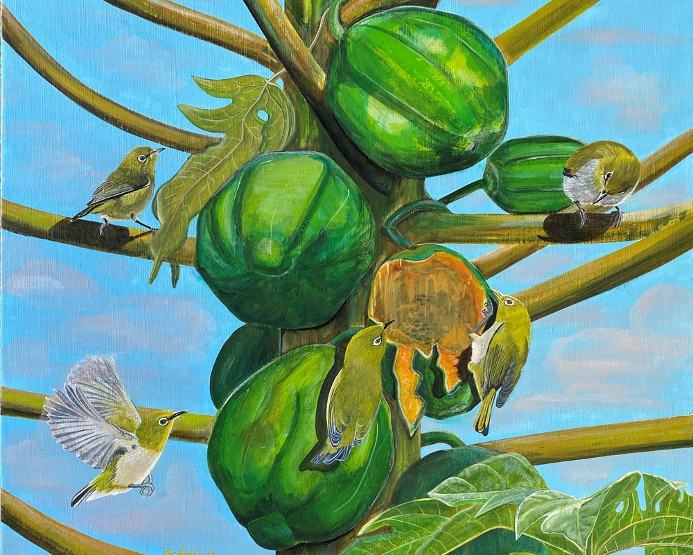 熟れのこったパパイヤに集うメジロ達。枯れ行く果実だが、求めるメジロ達にはごちそう。賑やかな食事の時間。
