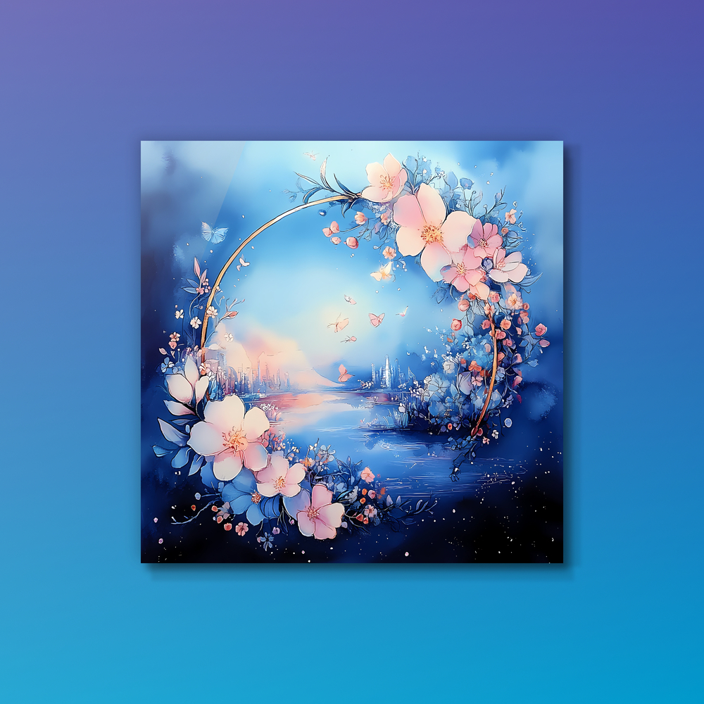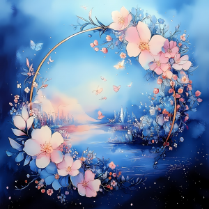 それは、魂がふたたび光を思い出す瞬間。 静かな湖面のような鏡に、あなたの中の宇宙が映し出される。 光の環がゆっくりとひらくとき、 鏡の中の世界と現実の世界が溶けあい、 過去も未来も、すべてが“今”という永遠に重なっていく。 花々は記憶の花弁となり、蝶たちは魂のメッセンジャー。 その環の中心には、あなた自身の原初の光が宿っている。