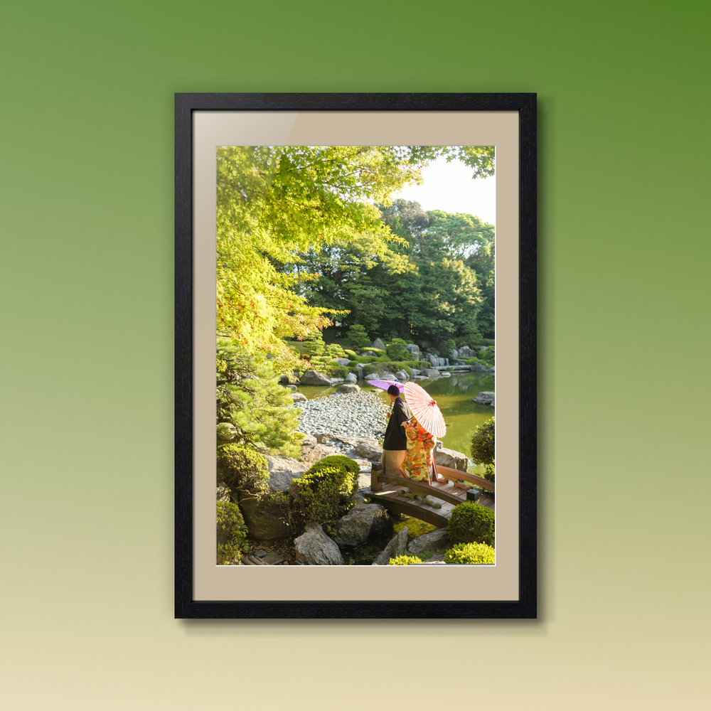 まさに、日本の美、和の美を代表するような伝統と自然の調和が美しい構図で、 凛とした空気の中に流れる静かな幸福を感じられるアートフォト。