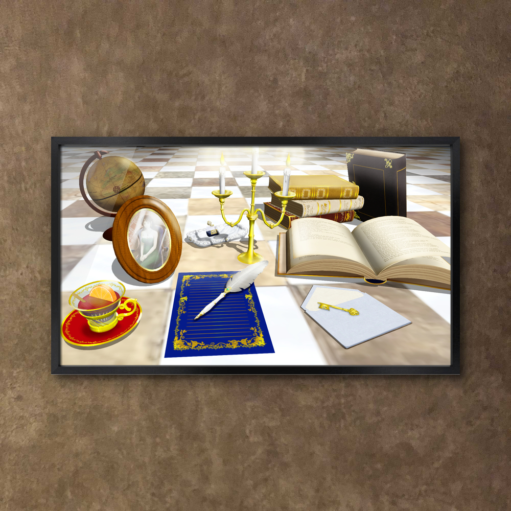 自分でデザインし作成した3Dモデルを配置し、陰影やハイライトを加筆したイラストです。