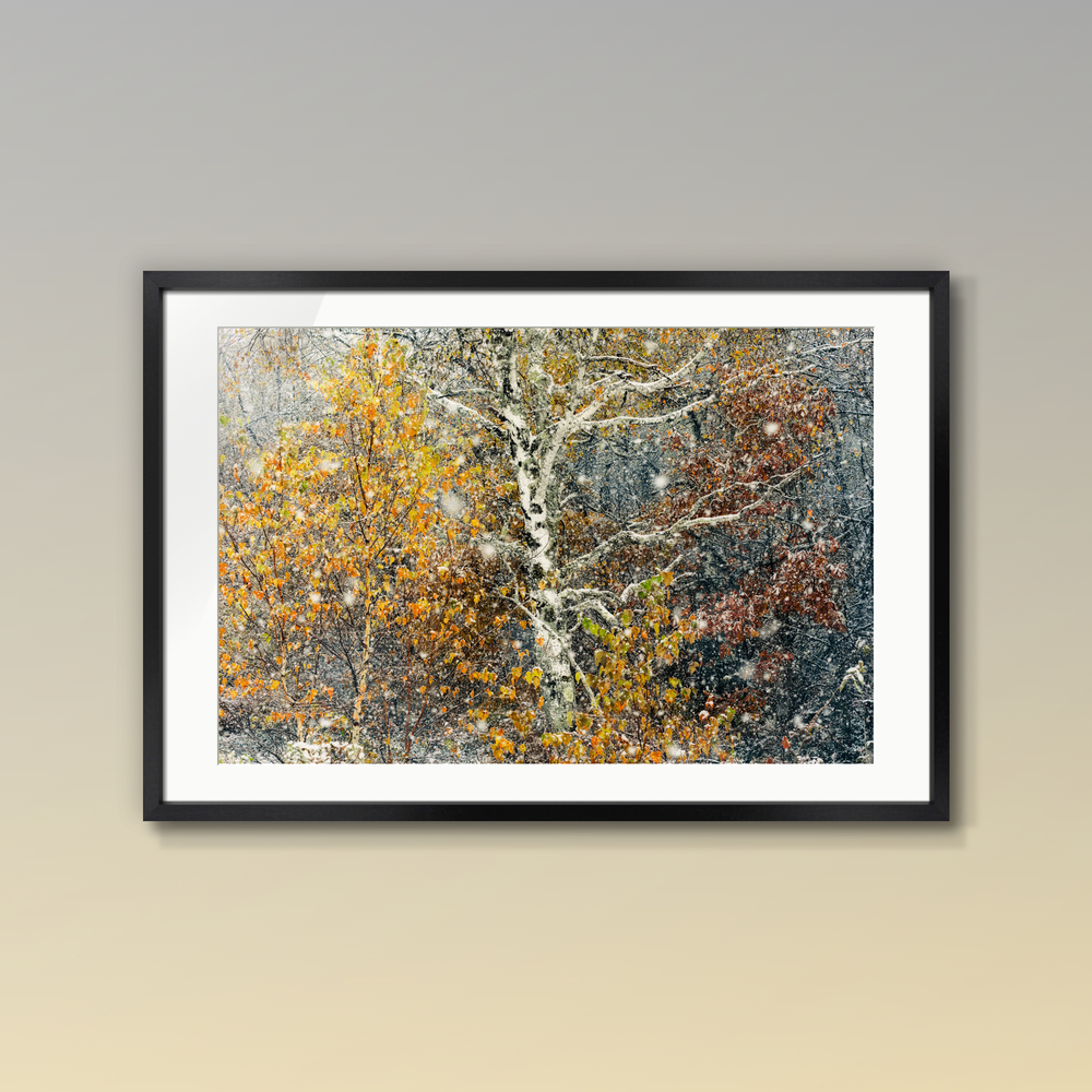 乗鞍の森は、息をひそめている。 一本の古い白樺が、二つの季節のあいだに立っていた―― 秋の名残る温もりと、雪の冷たさが降り始める世界のあいだに。 そのかすかな静寂の中で、時さえも耳を澄ませているようだった。
