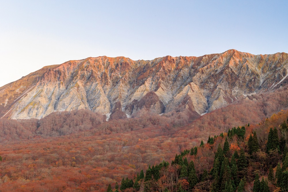 鳥取県江府町 大山 朝日に照らされる秋の大山を鍵掛峠展望台より撮影しました。