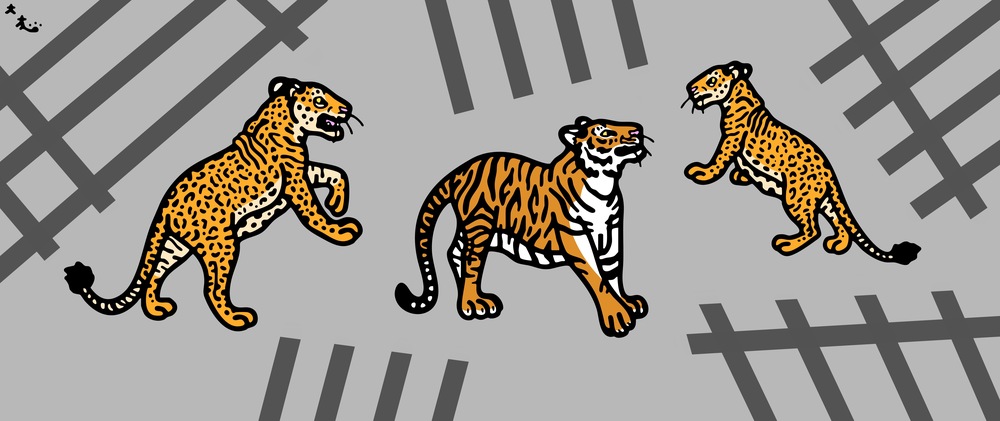 分類:食肉目ネコ科 英題:Leoponesses and Bengal Tiger
