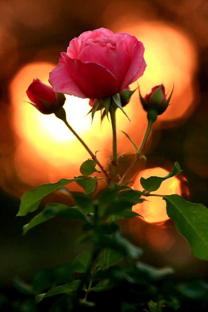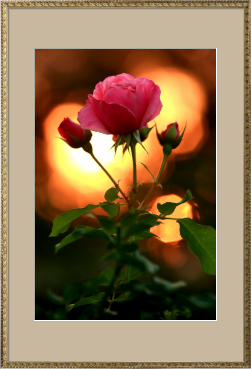 バラ園の西側には常緑樹の巨木が聳えているので午後三時過ぎには暗くなります。しかし、15分位すると太陽が更に低くなり、所々で木漏れ日が差します。 そのタイミングを待って、理想的な背景を探しながらバラ園を走り回って、数コマ程自分なりに納得の行く【絵】を得ることが出来ました。