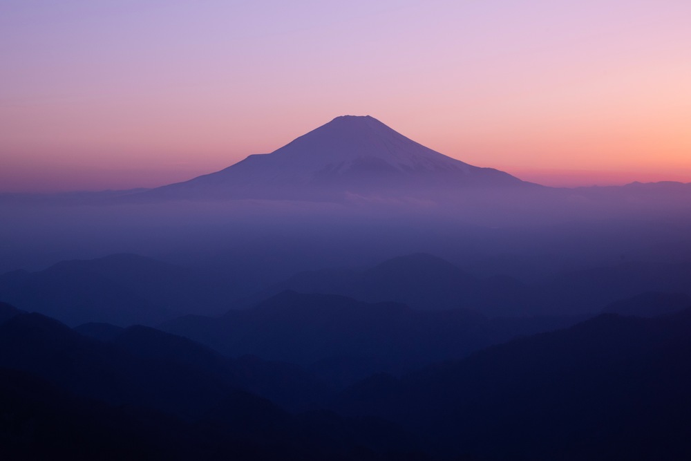 塔ノ岳から眺めた夕刻の富士山。他の山々を従えているようでした。