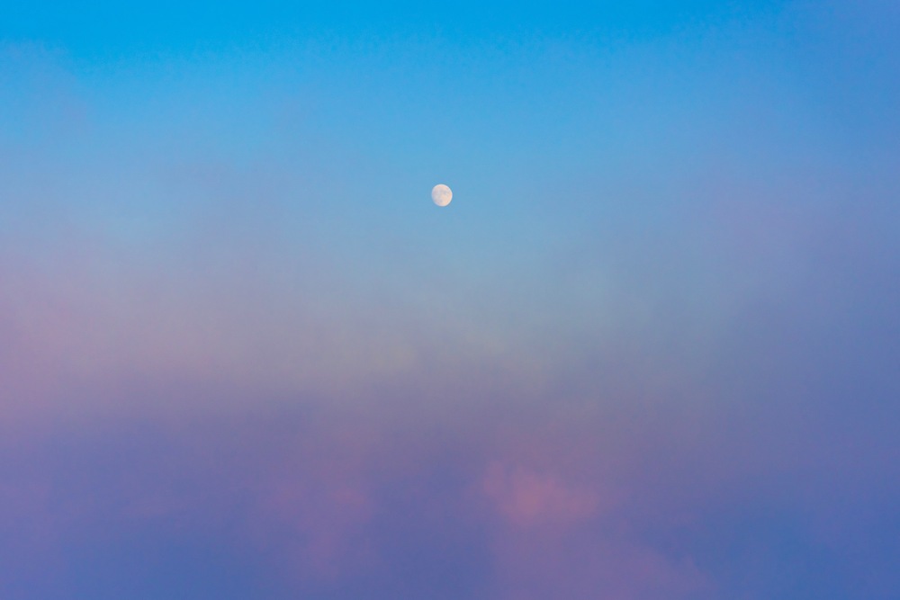 標高2763mの燕岳山頂付近から撮影した、雲の上に現れた月。