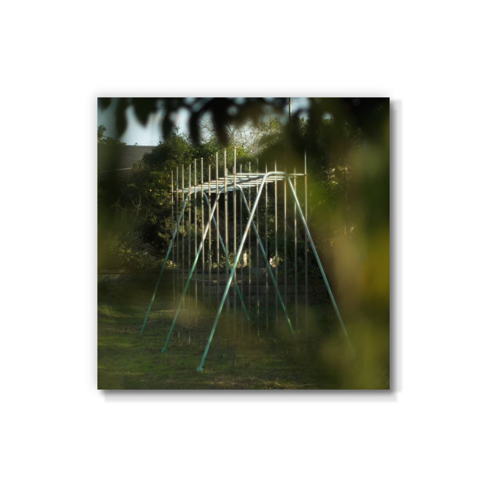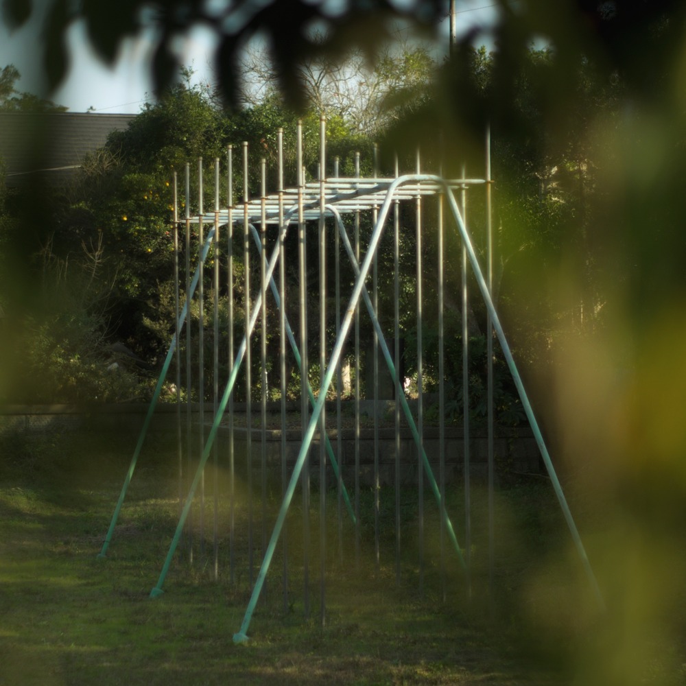 小学校が廃校になってもう使われなくなった登り棒、夕日が差していて物寂しげに見えました。