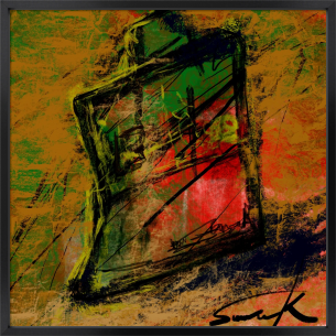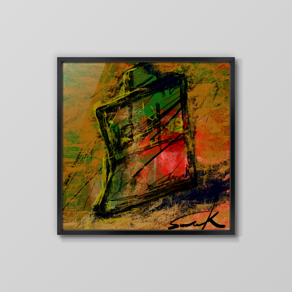強さと静けさを同時にまとった、男性用フレグランスをモチーフにした抽象作品。 深いグリーンは上質で落ち着いた香りの余韻を、鮮烈なレッドは香水が放つ情熱的なアクセントを表現しています。 香りが空間に溶け、記憶へと滑り込んでいくような一瞬のイメージを、荒々しくも繊細なタッチで描きました。 見る角度や距離によって印象が変わる、余白の想像を楽しめる一枚です。