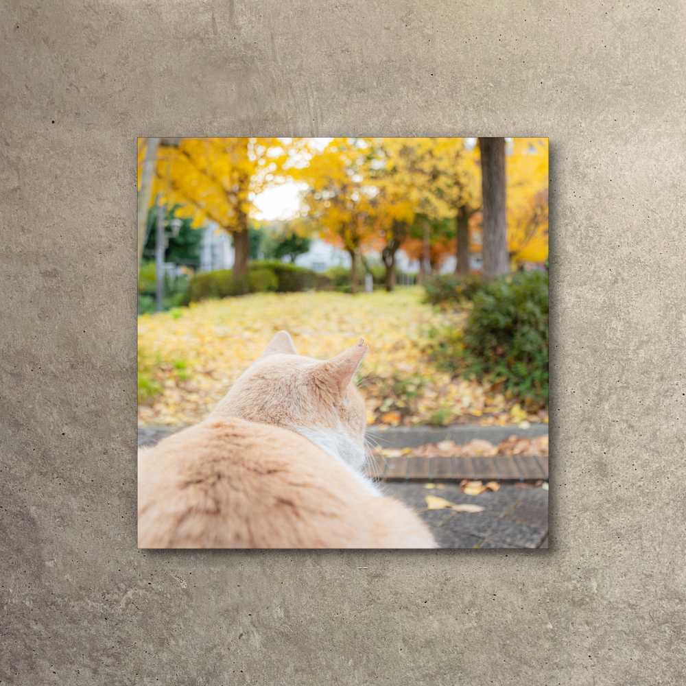【シリーズ作品】 秋の風が猫の足元をそっと撫で、世界は静まり返る 金色のまどろみは、まるで秋だけが知る夢の続きのようだったーーー 飾り方が変わると、物語も変わる。 季節のシリーズ「金色のまどろみ」全4枚 一枚だけでも、縦や横、格子に並べても、空間に静かな物語が生まれます。 あなたの感性で、自由に楽しんでください。