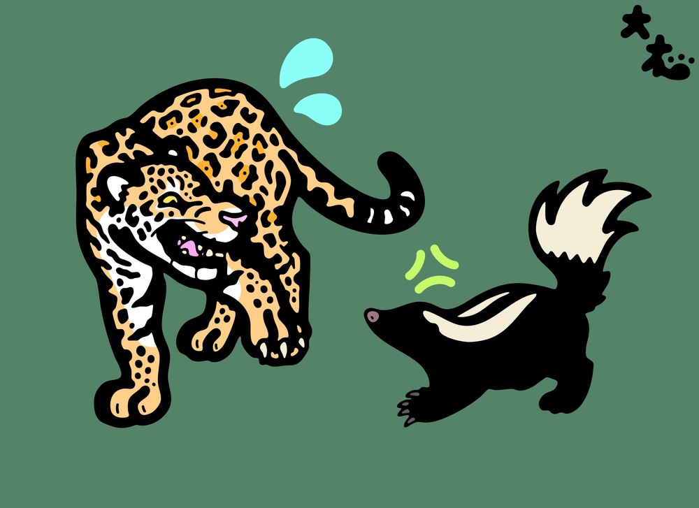 分類:食肉目ネコ科/スカンク科 英題:Jaguar vs Striped Hog-nosed Skunk