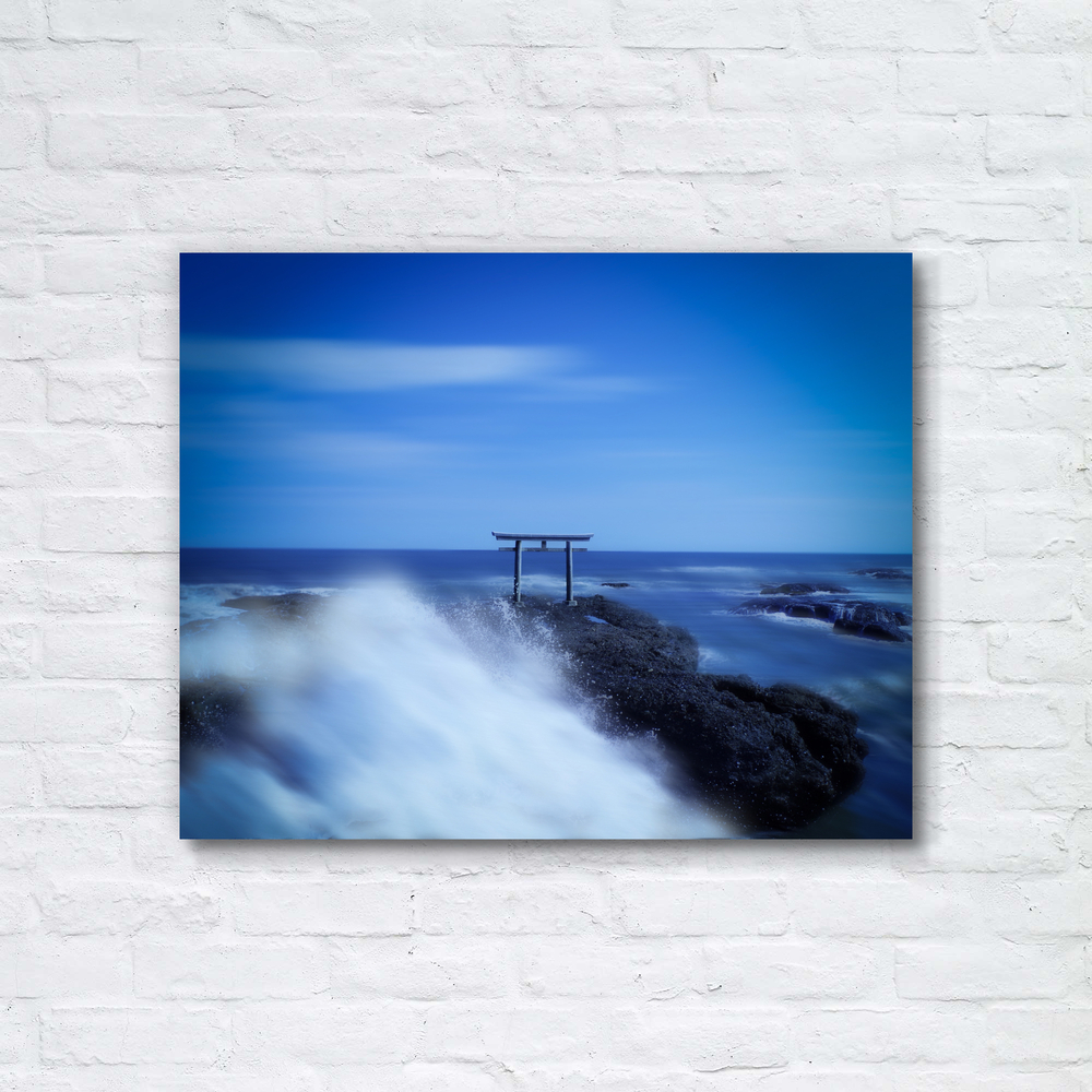 夏の終わり、秋の気配が静かに漂う海辺に、鳥居がひっそりと佇んでいます。波は長時間露光によって柔らかく描かれ、岩場を包み込むように広がる水の表情が、幻想的な静けさを生み出しています。空は澄み渡り、青のグラデーションが季節の移ろいを感じさせます。鳥居は現世と彼岸を隔てる象徴として、見る者に精神的な旅路を想起させます。添えられた言葉「往ける者よ…悟りあれ 幸あれ」は、この風景に深みを与え、写真全体が一つの祈りのように感じられます。晩夏から初秋へと向かうこの一枚は、季節の境界に立つ静かな美しさを捉えています。