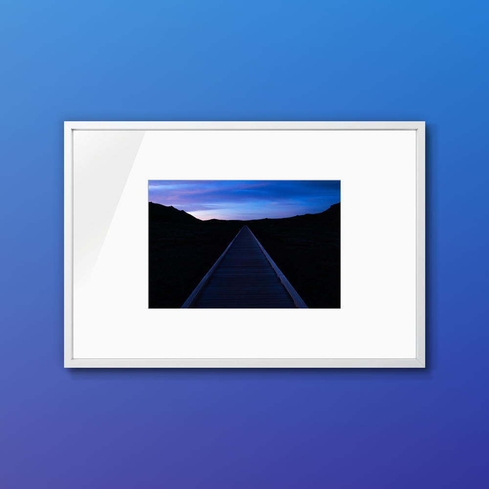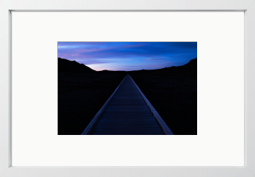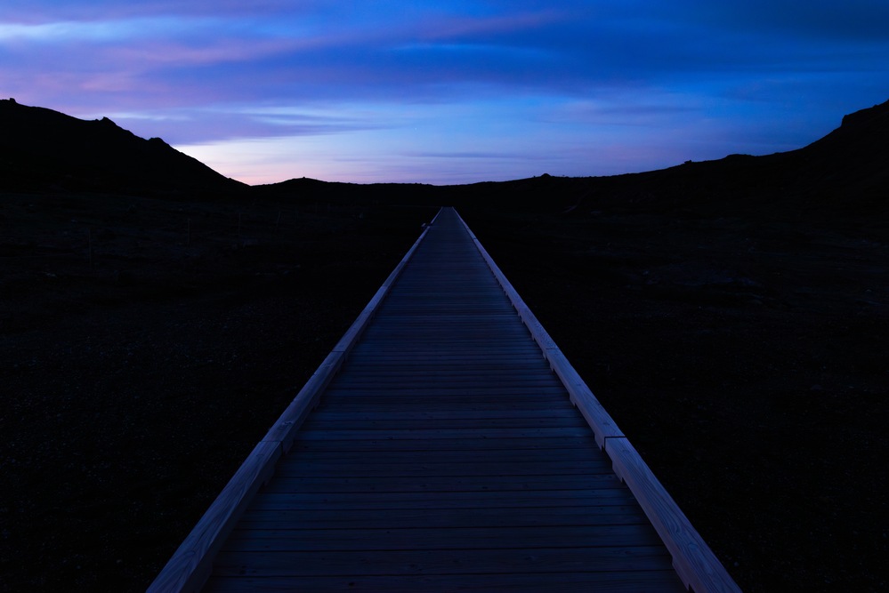 夜明け前の仄かな光に浮かび上がる木道。砂千里ヶ浜にて撮影。