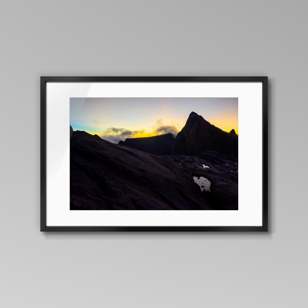 マレーシアに聳える4000m峰、キナバル山の朝の景色です。壮大で重厚感のある山容をお部屋のアクセントにいかがでしょう。