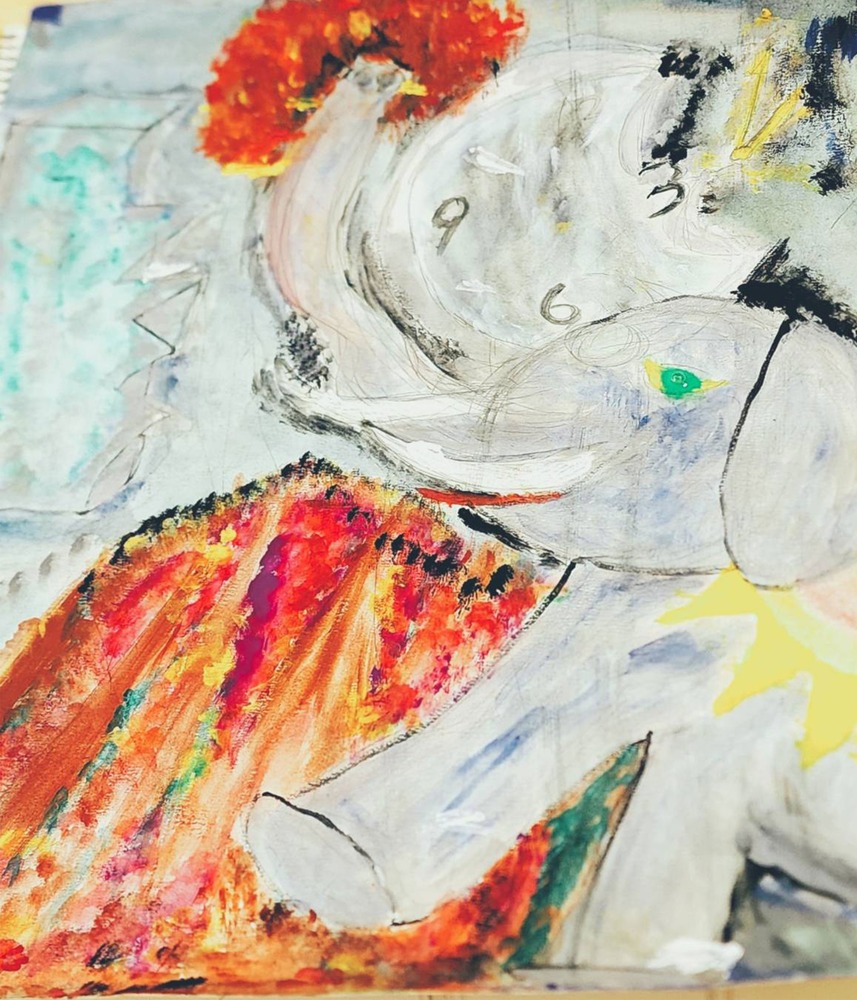 第8回全国公募「日美展」絵画部門に初出展し、初入選した作品です。制作を始めた頃は、毎日襲ってくる更年期症状に悩まされていました(-_-;) テーマは怒りと崩壊で、象の鼻からは火花と血潮が噴き出しています🔥 原画の魅力をそのまま残したかったので、加工は一切していません。