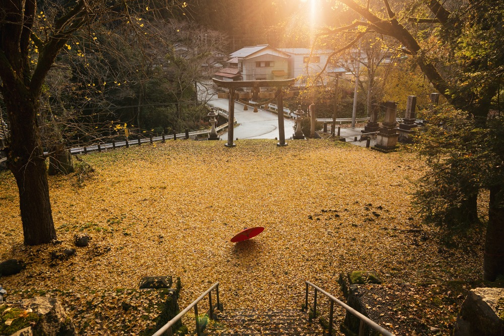 Title:落葉と和傘