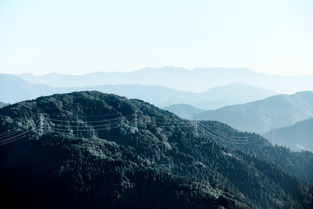 送電網がモチーフの風景写真です。