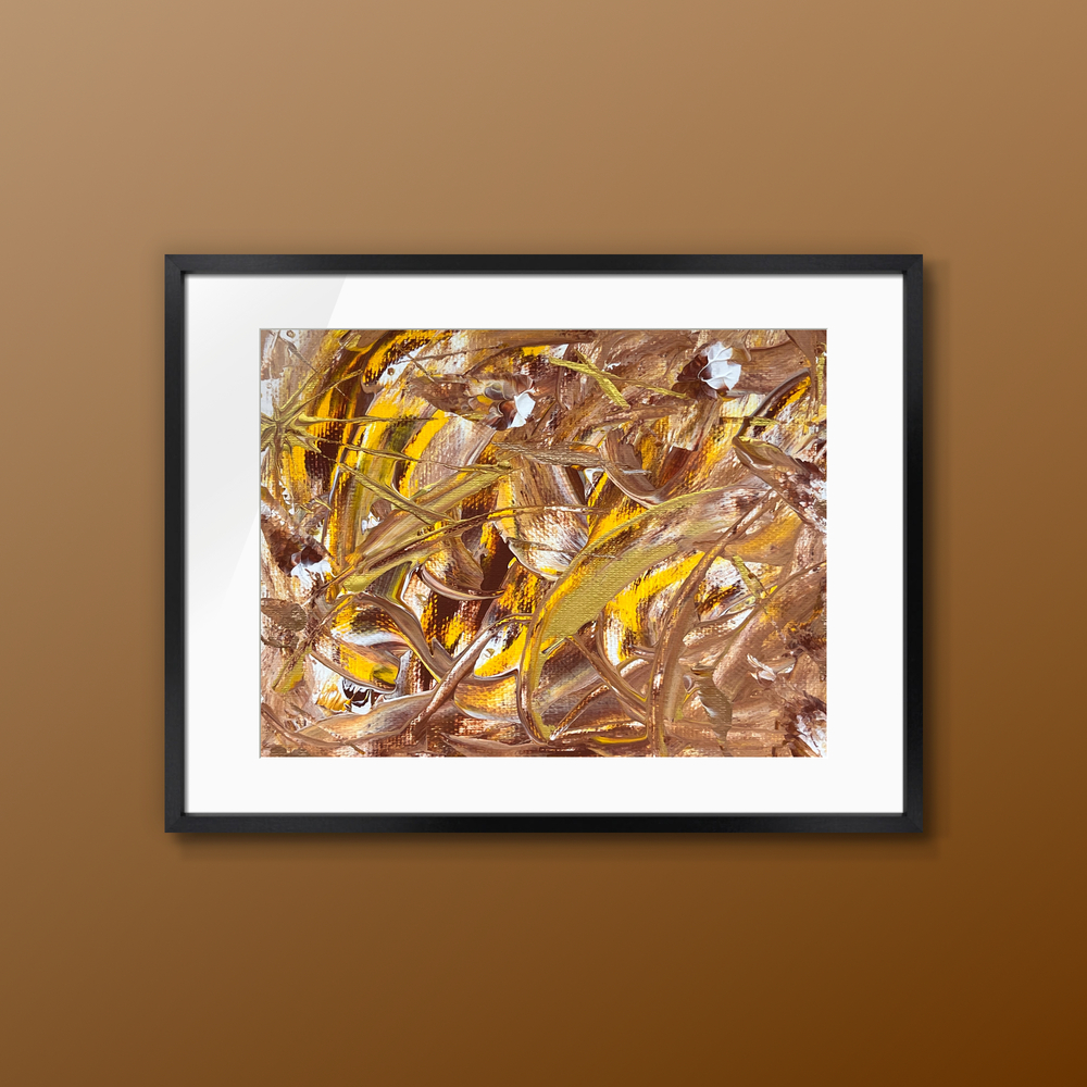 溶け合う琥珀と焦香が織りなす、遠い記憶の香り。 金色の光が柔らかく絡み合い、時の底に沈んだ甘い午後を呼び覚まします。 あなたの胸の奥にしまい続けた、懐かしくて切ないひとときをそのまま閉じ込めた一枚です。 エレガントでありながら心に響くこのアートは、日常の喧騒を忘れさせ、新たなインスピレーションをもたらします。