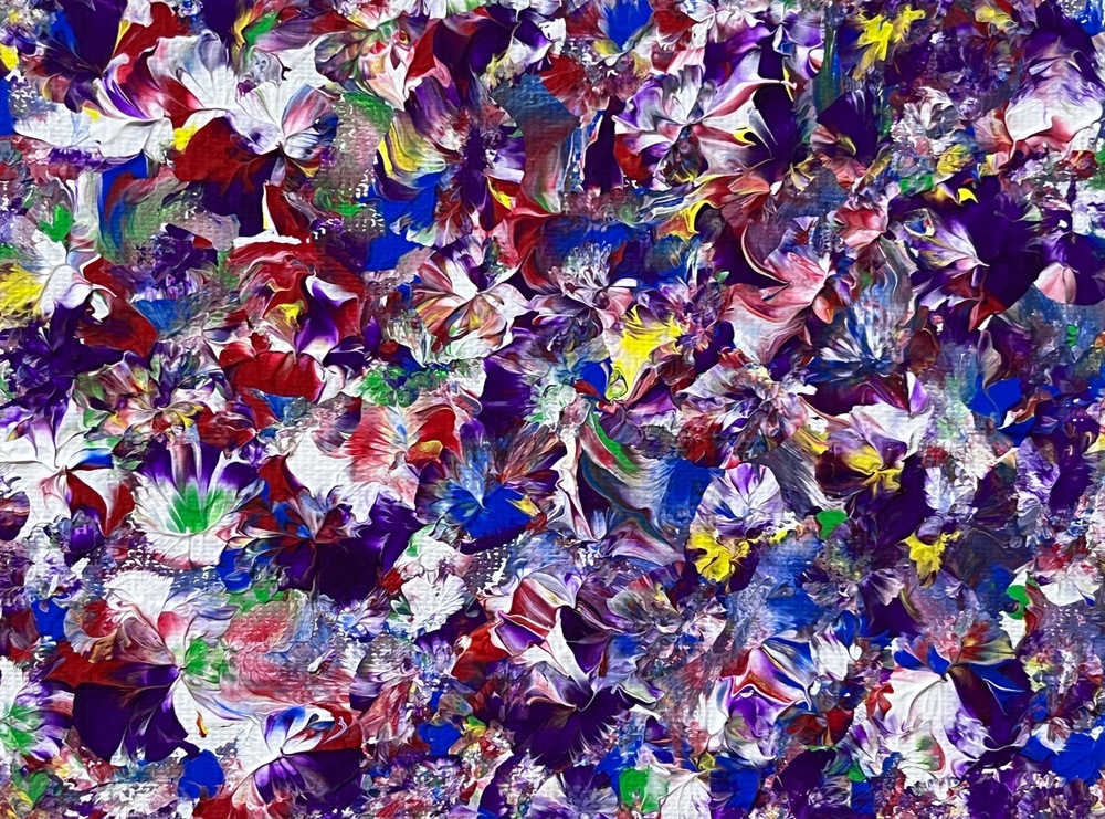 心を奪う美しい花弁が描かれた、夢のような夜を感じさせる一枚です。その繊細で幻想的な色合いは、まるで夜の静寂に染まる花々の美しさを届けてくれます。穏やかな気持ちを呼び覚まし、日常の喧騒を忘れさせるこのアートは、心に穏やかな安らぎをもたらします。見るたびに、その魅惑的な世界に引き込まれ、まるで夢の中にいるかのように心を惹きつけられることでしょう。