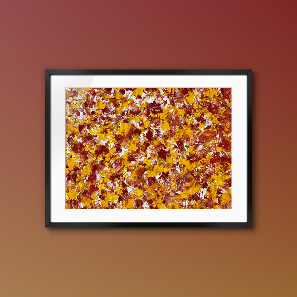 心を引き寄せる煌めくオレンジと深紅の花弁が、黄金の陽光を浴びて狂おしく舞う瞬間を捉えた一枚です。豊かな色合いは、まるで情熱的な夏の日々を思わせる美しさを感じさせています。このアートは、日常のストレスを忘れさせ、心に温かい安らぎを与えてくれます。見るたびに、その生き生きとした瞬間に引き込まれ、まるでその花々の中にいるかのように魅了されてしまうことでしょう。