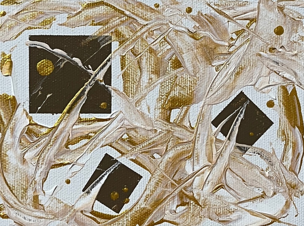 深い香り漂うシャンパンカラーが柔らかく広がり、優雅な夢の世界へと心を誘います。滑らかなベルベットの質感が、まるで贅沢なひとときを体験させてくれるようです。温かなゴールドとクリーミーなニュアンスが調和し、見るたびに華やかさと安らぎをもたらします。小さなキャンバスには、特別な瞬間を閉じ込めました。