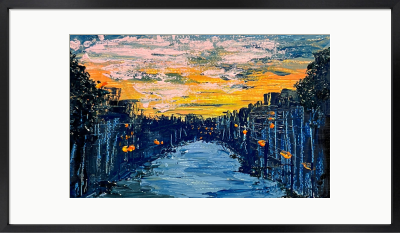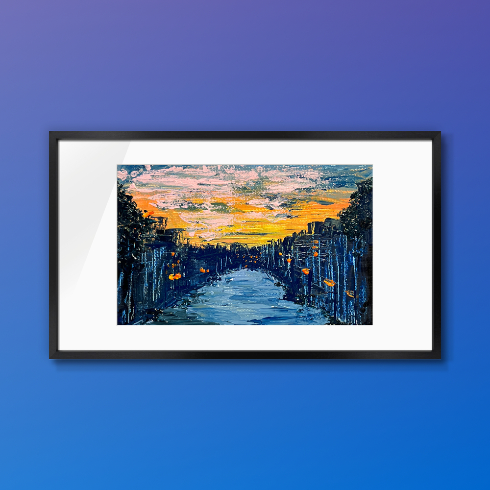 艶やかな夜明けの街並みが織り成す、心を魅了する美しい作品です。柔らかな光が幻想的な風景を描き出し、まるで新たな一日の始まりに立ち会っているかのような穏やかな感覚が広がります。日常の忙しさを忘れ、心に安らぎをもたらす瞬間へと導いてくれることでしょう。何度も鑑賞することで、心の奥に秘めた夢や希望を再認識させる存在となり、特別な空間を演出します。