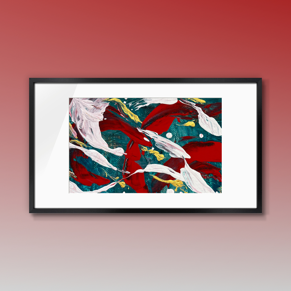 深緑の夜と紅蓮の炎が交わるこの作品は、あなたの空間に神秘的な美しさと祝祭の雰囲気をもたらします。降り積もる白い雪が静かに流れ、金の鐘の音が甘美に響き渡る様は、聖なる夜だけの特別な瞬間を表現しています。見るたびに、心の奥深くに眠る祝福の感情や、静けさの中に潜む神聖さを感じ取ることができるでしょう。
