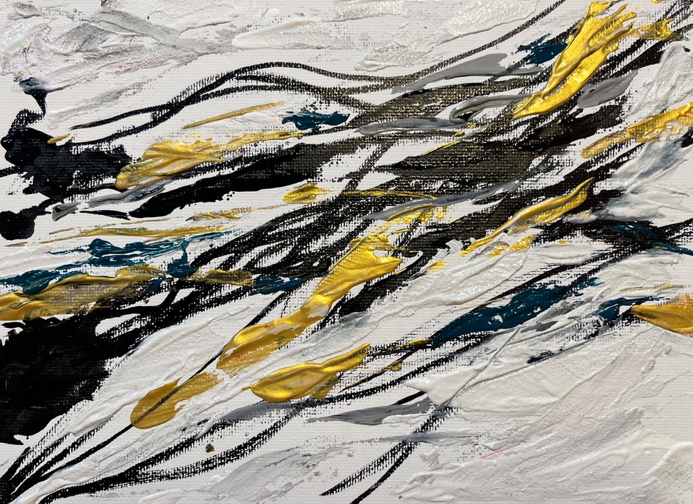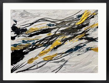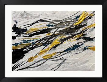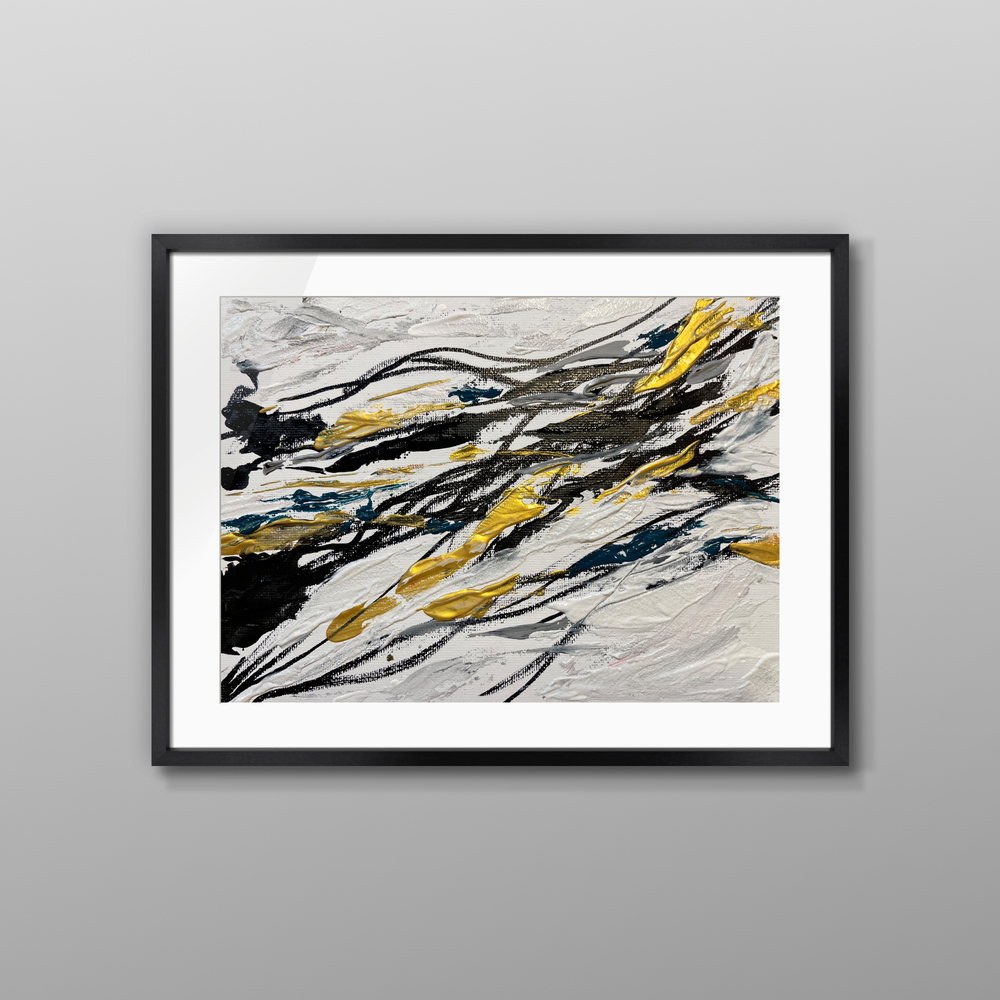 神秘的な影が織り成す、心を惹きつける洗練された作品です。深みのある黒とゴールド、柔らかなグレーの色合いが調和し、まるで幻想的な夢の世界へと誘われるかのような感覚が広がります。日常の喧騒を忘れ、心にゆったりとした安らぎを与える瞬間へと導いてくれることでしょう。何度も眺めることで、心の奥に秘めた思い出や感動が呼び覚まされ、特別な空間を演出します。