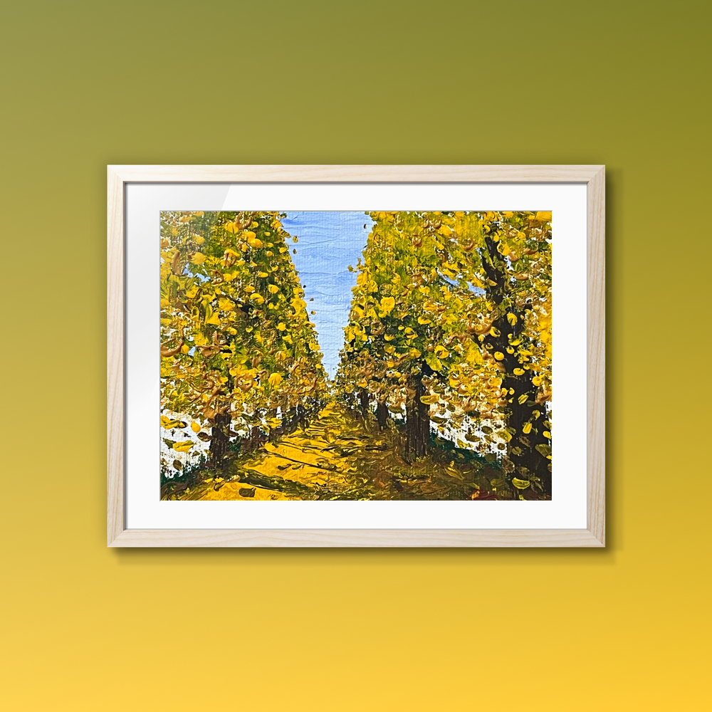 心を惹きつける美しいイチョウ並木が、金色の光に包まれた幻想的な風景を描き出します。柔らかな秋の風が吹き抜ける瞬間を切り取り、まるでその場にいるかのような心地よさを感じさせる一枚です。祝福のような黄金色の葉が、日常の忙しさを忘れさせ、穏やかな安らぎを与えてくれます。見るたびに、その魅了する世界に引き込まれ、まるで秋の詩の中にいるかのように心を惹きつけられることでしょう。