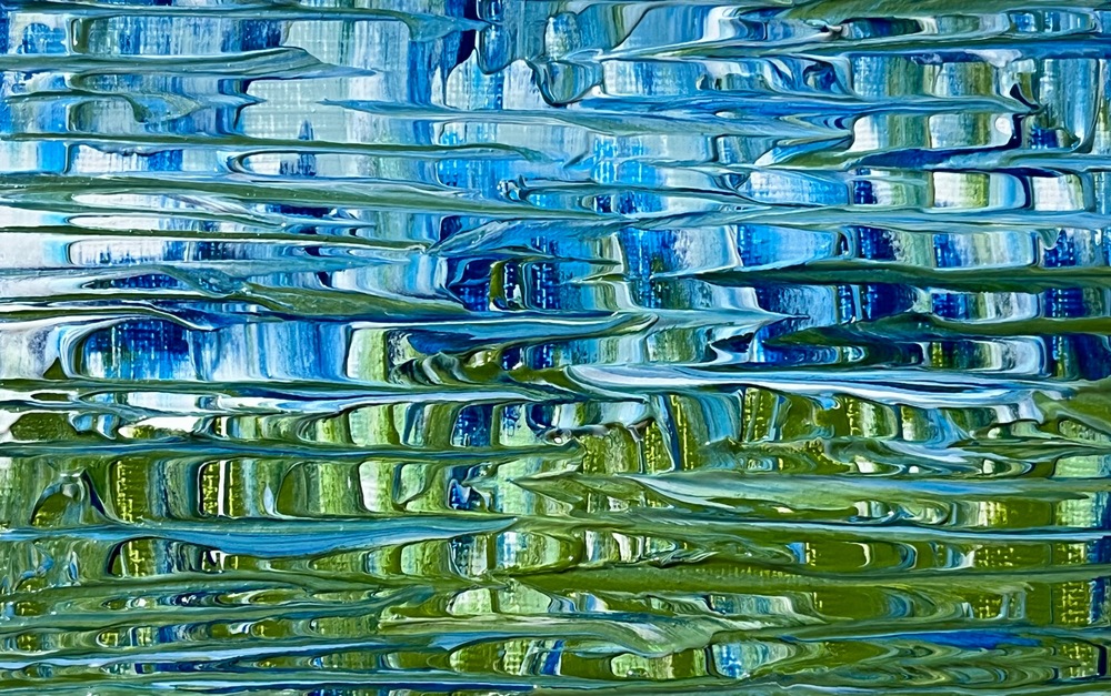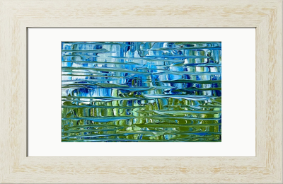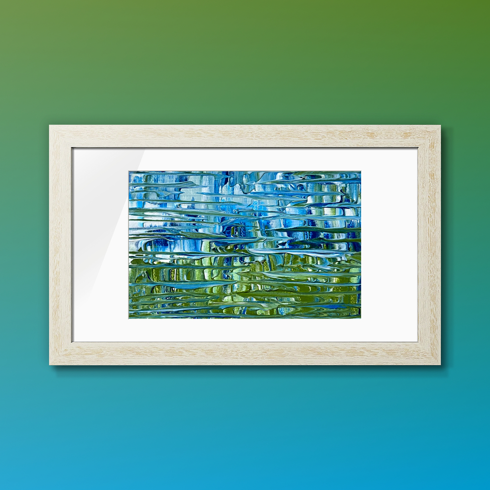優美なアクアマリンの層が波のように重なり合い、夢の世界を描き出します。透き通るような青色は、心を澄ませる清らかな水のように、美しい幻想的な風景を演出します。暖かな光に包まれたこの作品は、日常に穏やかな風を送り込み、心の奥深くまで響く感動をもたらします。
