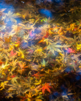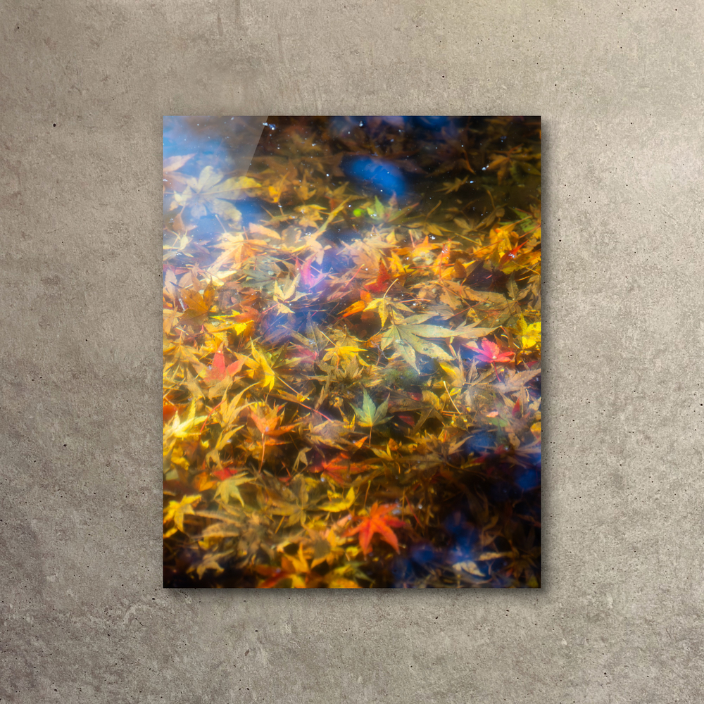 水に沈んだ紅葉は消えゆく季節の名残のよう 光をまとったまま、水中に時間をとどめている
